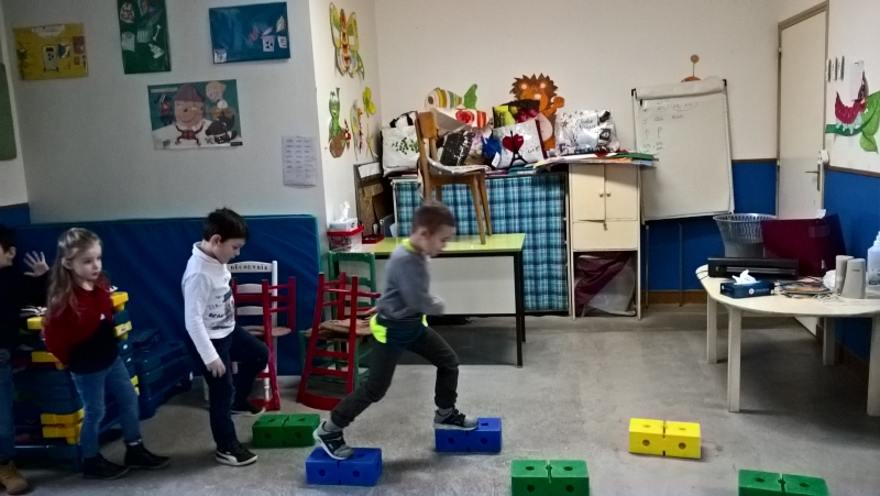 Durant cette période, tous les mardis, les CP découvraient un nouveau sport : le rugby. Pendant ce temps, nous avions la chance de passer un moment avec Hélène autour d’ateliers mais aussi de parcours de motricité. Le fait de se retrouver en petit groupe, a permis de travailler de façon plus individualisée et d’apprendre à faire des roulades avant, à marcher en équilibre, à ramper, à sauter…