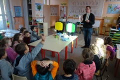 Jeudi 24 janvier, les ambassadeurs du tri de la COM COM sont venus expliquer aux enfants comment trier les déchets. Les déchets qui se recyclent comme le carton, le plastique (tout ce qui a la forme d’une bouteille et a contenu du liquide) et le métal vont dans la poubelle jaune.